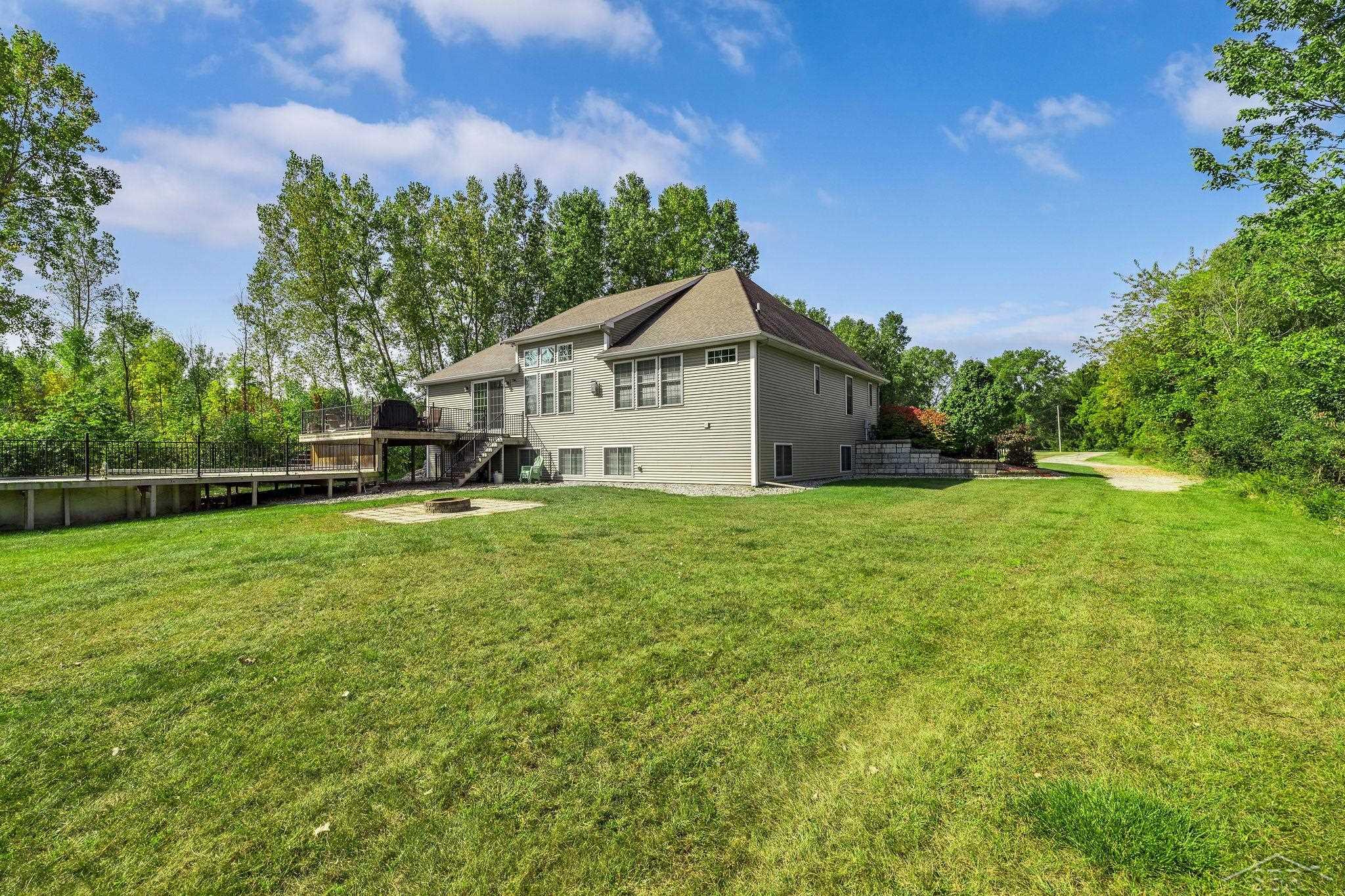 This beautiful custom Cobblestone home, built in 2013, features 5 bedrooms and 3.5 bathrooms, blending quality construction with thoughtful design and well-appointed features throughout. Upon entering, you're welcomed by 10-foot ceilings in the foyer. The open-concept great room features vaulted ceilings, a gas fireplace, and seamlessly connects to the gourmet kitchen—complete with a large granite island, high-end appliances, a walk-in pantry, and ample storage. The main floor also includes a spacious primary suite with an ensuite bathroom, two additional bedrooms with a shared full bath between them, and convenient main-floor laundry. The finished basement offers additional living space, including a family room, two bedrooms with daylight windows, and a full bathroom—perfect for guests or extra space to spread out. Energy efficiency is a plus, with a 5-Star Energy Certification and whole-house air exchanger. The 3-car finished garage includes a heater with its own thermostat, hot/cold water access, and a 220V plug. Outside, enjoy a 30x40 pole barn with a cement floor and electricity, an 18x38 pool with extensive decking, a zipline, and wooded trails. Conveniently located between Midland, Auburn, and Bay City, this property offers space, comfort, and convenience.