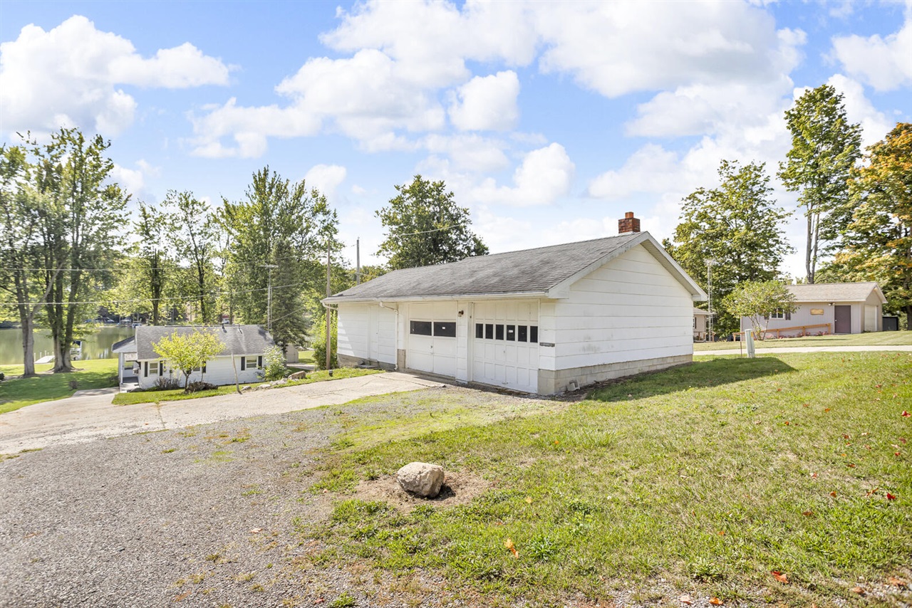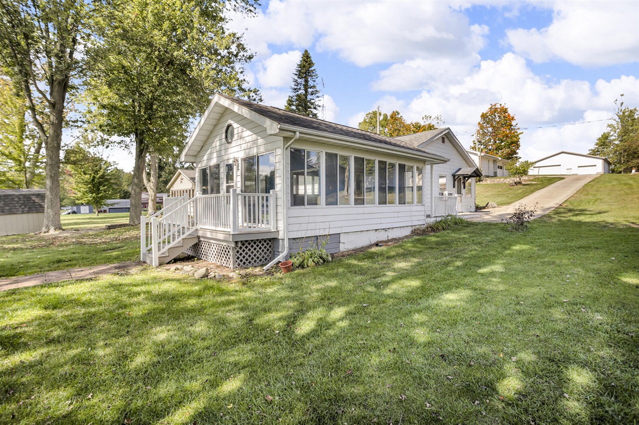 Private All Sport Lime Lake! Breathtaking View! Peaceful setting for this terrific, Ranch home, featuring an open floor plan with two bedrooms, bath and a wonderful, enclosed sunporch. Relax on the porch and enjoy the beautiful lakeside yard. This is the perfect lakefront, features level lot, spectacular views, with 60 ft of lakefront to enjoy boating, swimming, kayaking and great fishing. Dock al included! 3 car detached garage and lots of parking. Adjacent rear lot with new 46 x 50 pole barn also available. See MLS # 25049959. Note 1011 square feet does not include sunroom which is 272 square feet. By adding baseboard electric heat this would increase the square footage to 1283 square feet. Current appraisal on file.