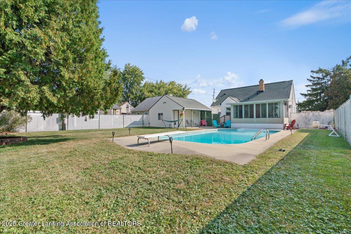 Welcome to 2189 Aurelius Road! This absolutely charming 3-bedroom, 1-bath cape cod home offers a wonderful blend of comfort and convenience. The updated living area flows into a bright kitchen and eat-in dining nook. The 3 seasons room is perfect for relaxing with morning coffee or enjoying views of your backyard oasis! Step outside to a stunning inground pool--ideal for summer entertaining and making memories, along with stamped concrete, and a gorgeous lawn area. There are two bedrooms and a bath for those who may be seeking the ease of main floor living. This home is conveniently located near schools, shopping and restaurants, but you may never want to leave! This home is move-in-ready and waiting for you to make it your own!