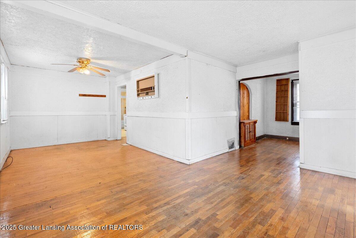 Welcome to 410 Dunlap St in Lansing, MI Aaa a charming and spacious home with plenty of character and opportunity. This three-bedroom property offers a warm and welcoming feel from the moment you step inside. A lovely foyer opens into a bright living area, highlighted by gorgeous hardwood floors and a beautiful beamed ceiling that adds timeless charm.The main floor features a generously sized bedroom and a recently updated full bathroom with a new exhaust fan for comfort and convenience. Upstairs, you'll find two additional bedrooms and a flexible landing space, ideal for a home office, play area, or cozy reading nook.Outside, enjoy the added bonus of a large shed, perfect for extra storage or a personal workshop.